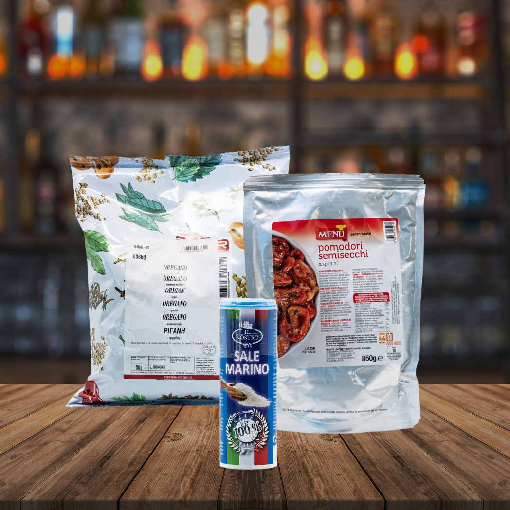 Halbgetrocknete Tomaten, aromatischer Oregano und feines Meersalz ergeben eine Basis, die mediterrane Rezepte im Handumdrehen verfeinert. Ein Set, das für authentische Aromen und unkomplizierten Genuss steht.