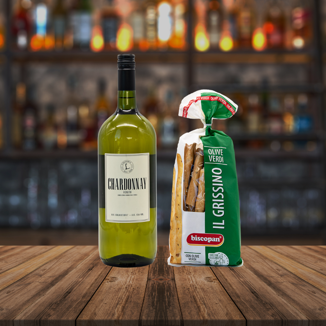 Ein Glas frischer, eleganter Chardonnay trifft auf knusprige Grissini mit feinen Olivenstückchen. Gemeinsam ergeben sie eine stilvolle Kombination, die jeden Aperitif oder geselligen Moment zu etwas Besonderem macht.