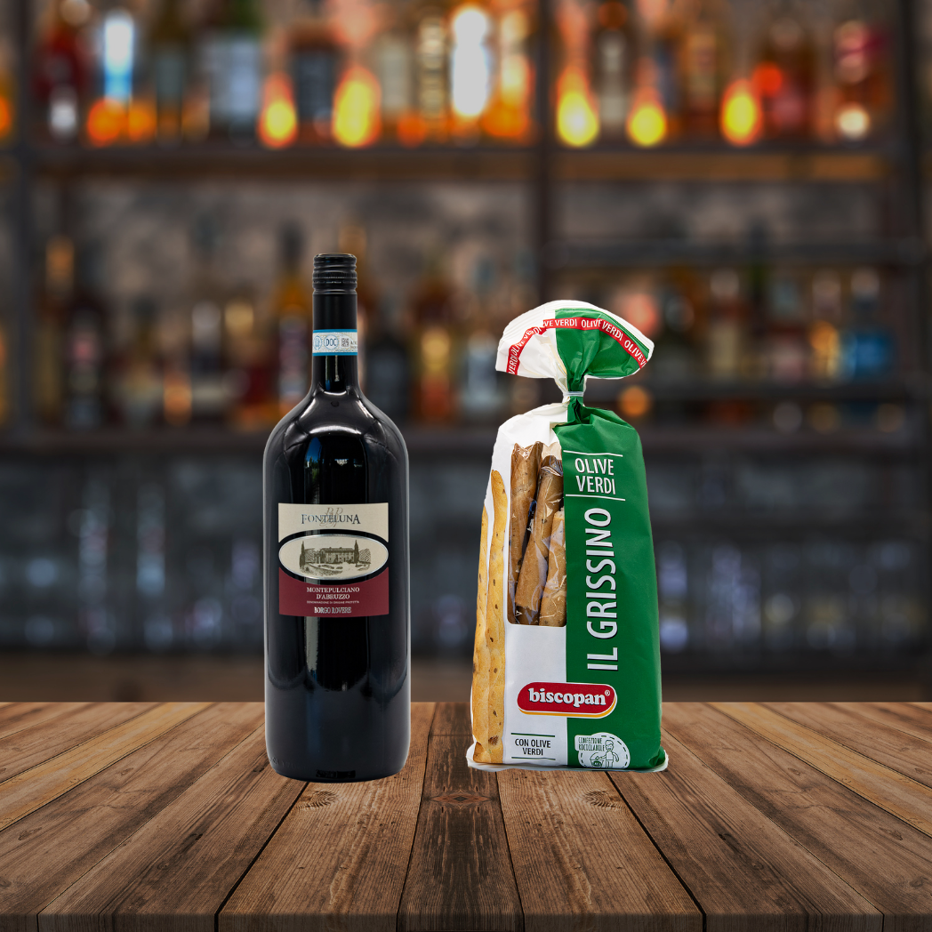 Kräftiger Montepulciano mit Noten dunkler Beeren und sanfter Würze trifft auf knusprige Grissini mit feinen Olivenstückchen. Die saftige Frucht und die leichte Pfeffrigkeit des Weins ergänzen das herzhafte Olivenaroma.
