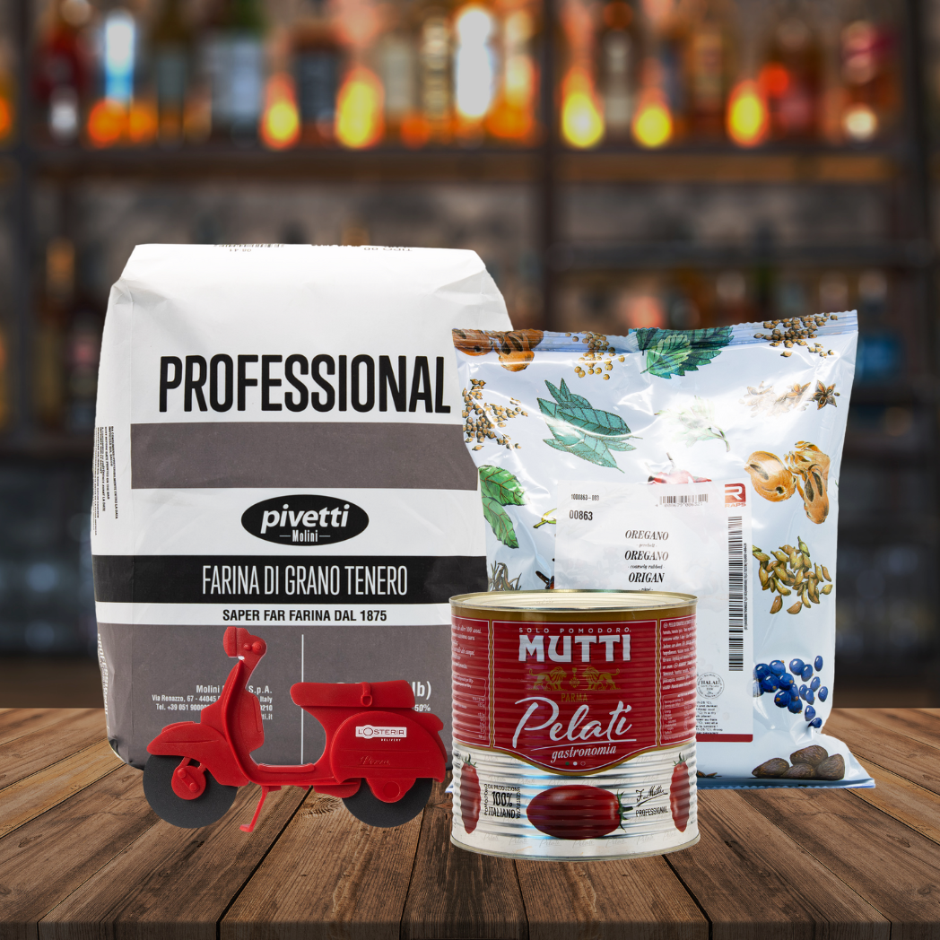 Feines Mehl trifft auf saftige Schältomaten und aromatischen Oregano. Ein unkompliziertes Trio für authentische Teige, Tomatensaucen und italienische Klassiker, ergänzt durch den Pizza-Roller im L’Osteria Vespa Design für stilechtes schneiden.