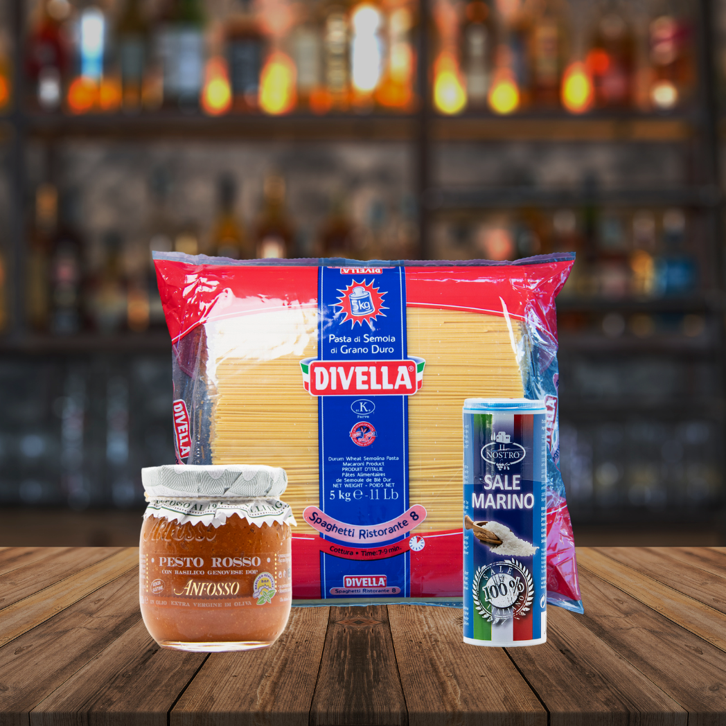 Spaghetti, rotes Pesto und Meersalz sind drei Zutaten, die für authentischen Pastagenuss stehen. Mit dem Pasta Set gelingt ein echtes Stück italienische Küche zu Hause.