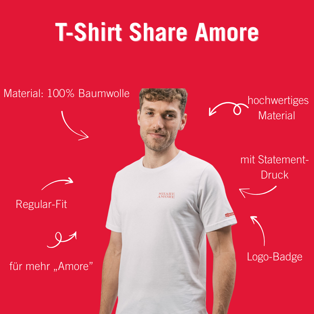 Setze ein Statement für mehr „Amore“ mit unserem klassischen White T-Shirt im Regular-Fit und kleinem Druck auf der Vorderseite sowie großflächigem Druck auf der Rückseite.